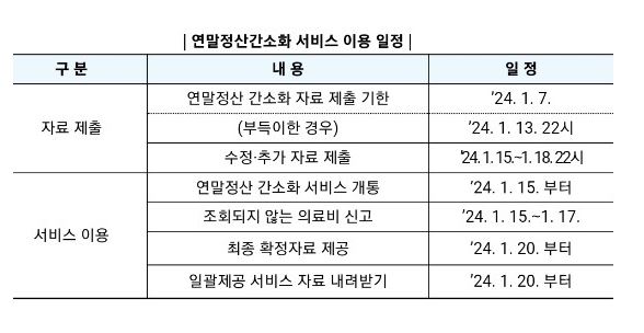 또한, 맞벌이 부부 등 근로자를 위한 연말정산 서비스는 1월 18일에 시작됩니다. 근로자는 간소화자료를 활용해 예상세액을 계산하고, 부양가족 공제 시뮬레이션을 통해 세금부담이 가장 낮은 경우를 선택할 수 있습니다.